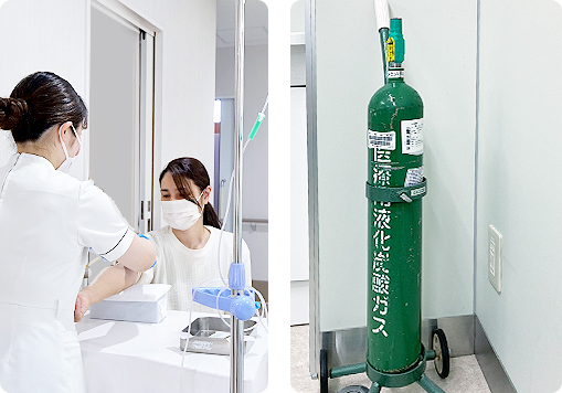 患者様の様子を伺いながら、バイタルサインを常にチェックし、鎮静剤の投与量や投与タイミングを調整・コントールしていますので、安心して検査をお受けいただけます。