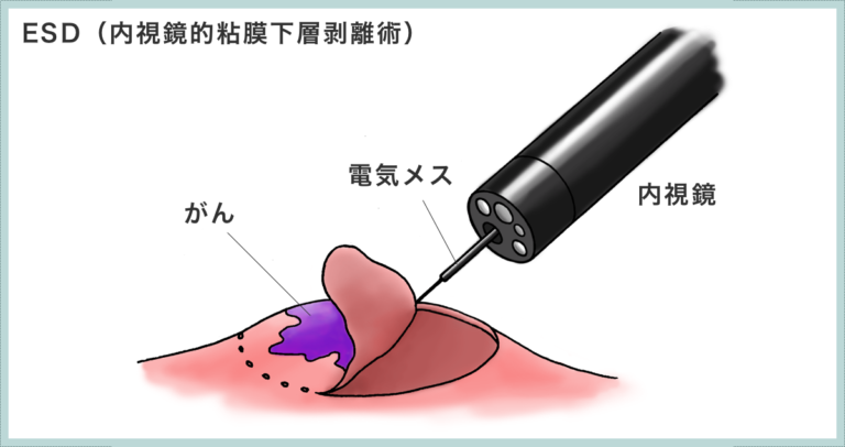 この場合はESDで取り切ることが難しく、外科手術が必要となります。胃を半分以上切除せざるを得ず、術後は食欲低下や体力の減少など、日常生活に影響が出ることがあります。